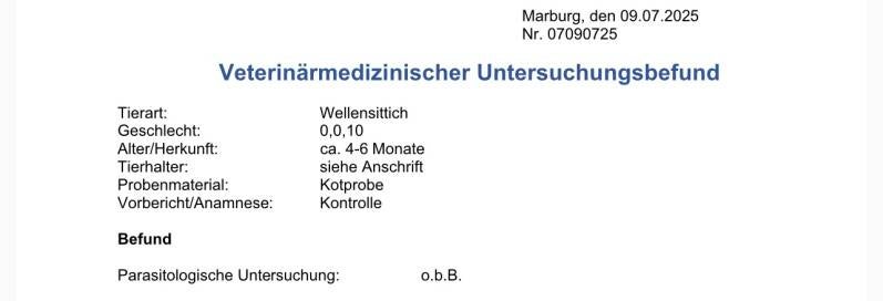Es wurde bereits eine umfassende Kotuntersuchung durchgeführt – mit einem durchweg negativen Ergebnis 🥳✨ Das bedeutet: keine Auffälligkeiten, keine Erkrankungen – alles in bester Ordnung ✔️